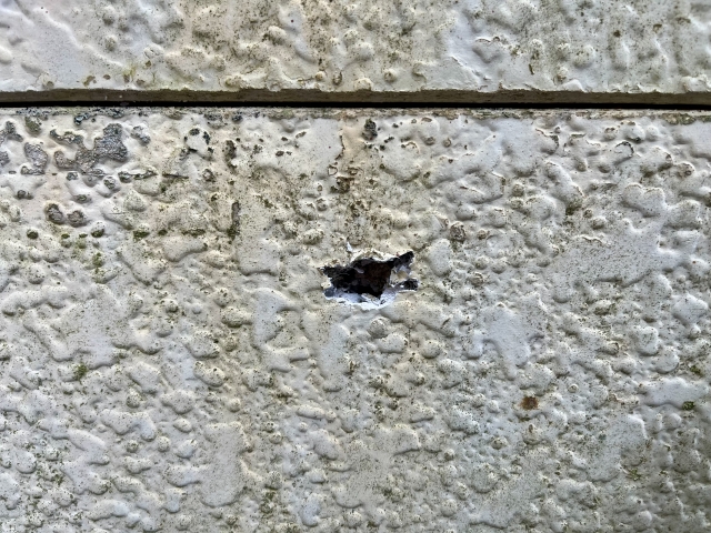 穴が原因で外壁の劣化が進行し、場合によっては建物全体の構造にも影響を与えることがあります。