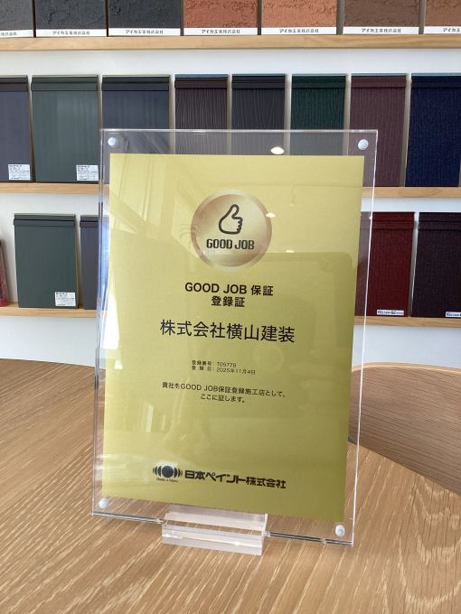 この度、横山建装は、日本ペイントの【GOOD JOB保証】登録施工店に認定されました👏